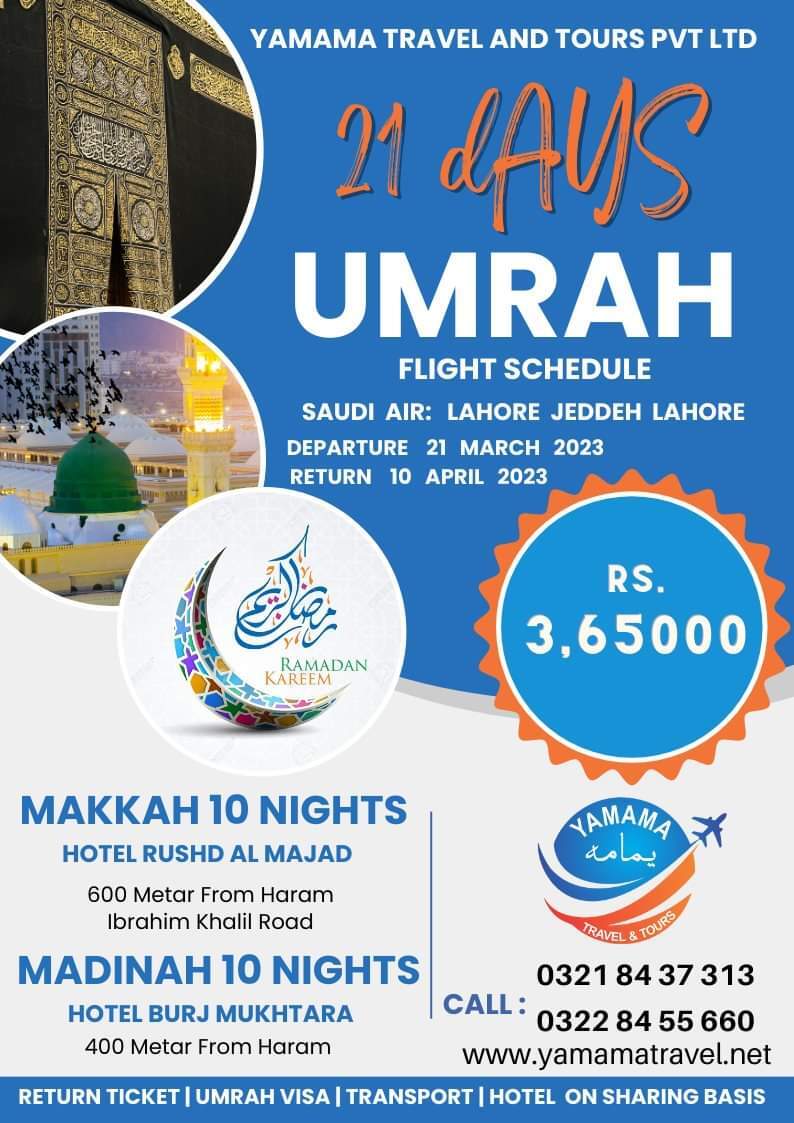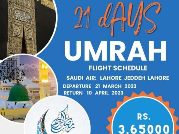 21 Days & 20 Nights Tour to Makkahper head 265000rs Departure date 21 march 2023